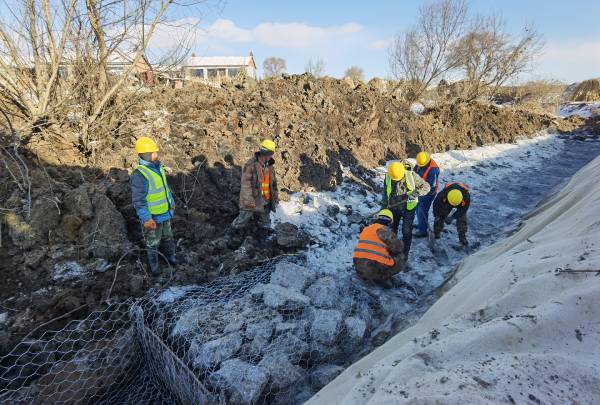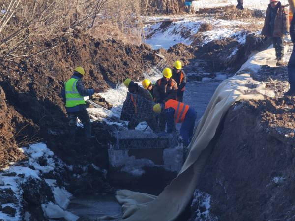 “從11月14日進場建設以來,每天有20多名工人從早上6點半開始施工,一直工作到下午5點左右。我們為工人統一配備了棉鞋、手套等保暖用品。同時,調動挖掘機兩臺、鏟車兩臺、自卸車兩臺,全力推進工程進度。每天使用石料約200立方米,可推進石籠網箱鋪設100米左右。”機耕路防護工程的現場技術員楊洪偉說。