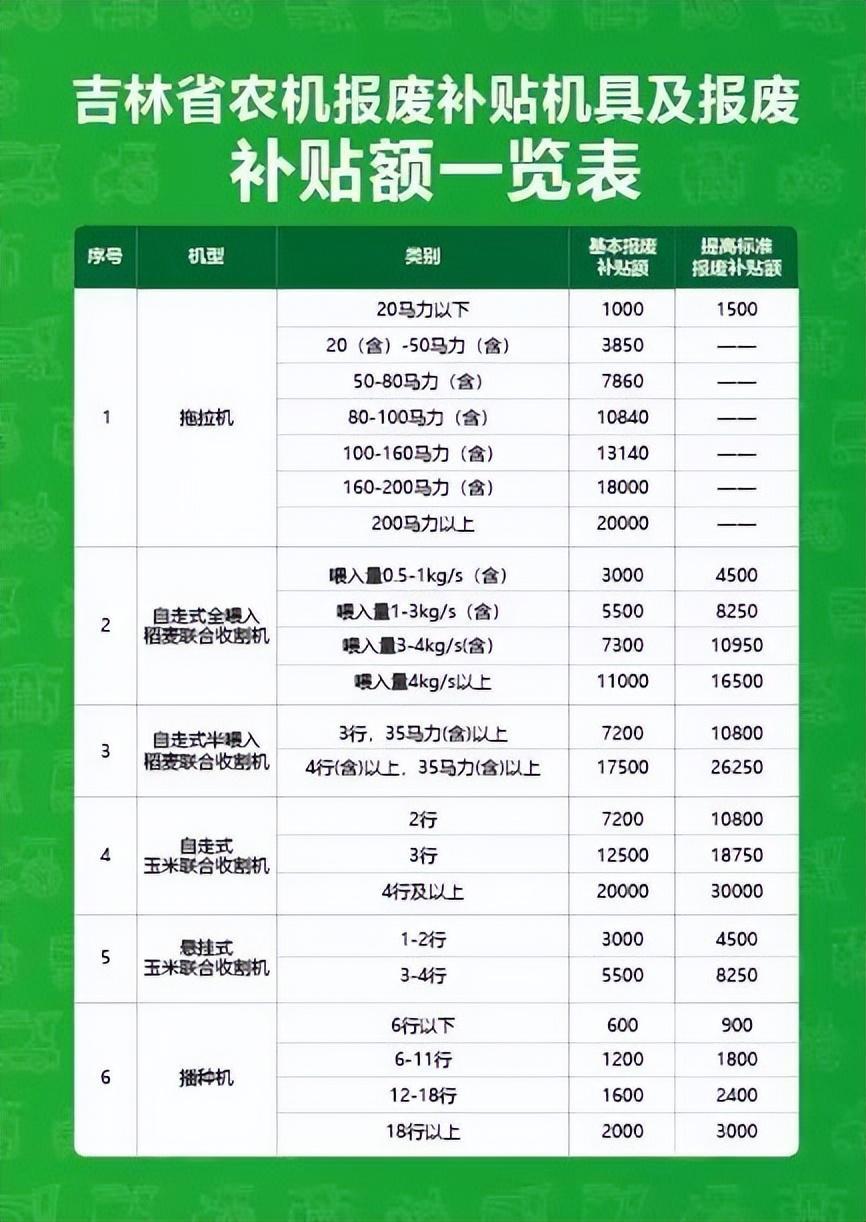 吉林省農(nóng)業(yè)機械報廢更新補貼政策明白卡