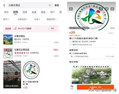 渠道三:美團(tuán) APP 或小程序 登錄美團(tuán) APP,或者在微信里打開(kāi)美團(tuán)小程序,搜索 “長(zhǎng)春農(nóng)博會(huì)”或“長(zhǎng)春農(nóng)博園”,就能找到購(gòu)票頁(yè)面進(jìn)行下單。游玩當(dāng)日,無(wú)需換票,掃碼就能輕松入園。