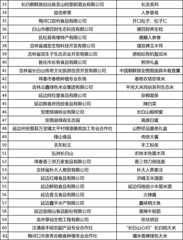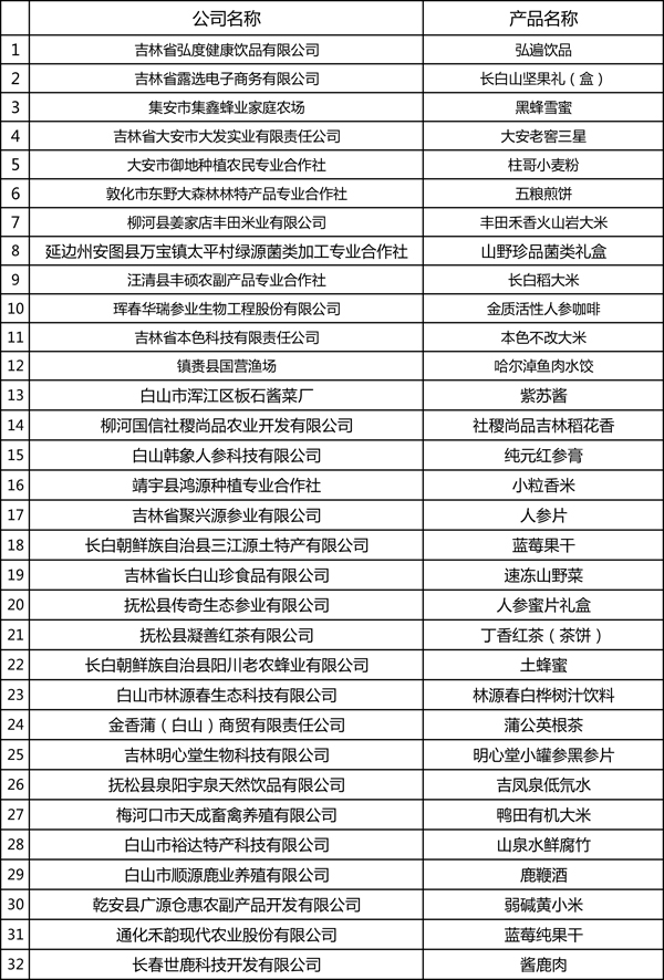 榮獲“吉林禮物”稱號企業(yè)及產品名單