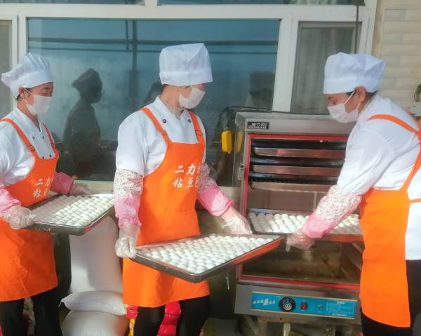 當下,這里的隆冬不再是純粹的東北農村“貓冬”季,徐云忠夫妻倆在黏豆包制作旺季,帶著大家忙碌在案臺邊,和面、烀豆餡、攥豆包......用一道道傳統工序,讓一個個香甜的黏豆包一天天成為鼓起腰包的“金豆包”。今年入冬至今,黏豆包日產量500斤、總產量達到2萬余斤,杜玲等12名員工和附近村民務工收入每月達2000余元。