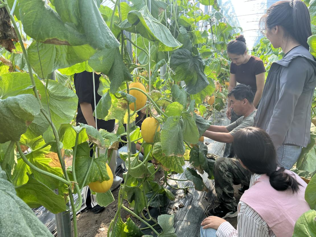 在不遠(yuǎn)處的村黨支部領(lǐng)辦合作社大棚,一個(gè)個(gè)金黃飽滿(mǎn)的哈密瓜掛在枝頭,村黨支部書(shū)記王福江為我們介紹道:“瞧,這是今年試驗(yàn)種植的哈密瓜棚,我們引進(jìn)優(yōu)質(zhì)種子自主培育,6月育苗,7月移栽,到了9月中下旬就可以陸續(xù)上市了,我們的哈密瓜之所以長(zhǎng)勢(shì)好,一方面是對(duì)溫度和濕度的把控,溫度、濕度都不能太高;另一方面,棚內(nèi)種植使得晝夜溫差大,這樣的生長(zhǎng)環(huán)境有利于增加哈密瓜的甜度,提升口感,這也得益于我們成熟的棚內(nèi)種植技術(shù)。”一邊說(shuō)著,王福江一邊切開(kāi)一個(gè)哈密瓜,橙紅色的果肉香氣四溢,一瞬間就在大棚內(nèi)彌漫開(kāi)來(lái)。“今年我們?cè)囼?yàn)種植的哈密瓜有1700株,預(yù)計(jì)產(chǎn)量能夠達(dá)到7000斤,為村集體帶來(lái)額外的4萬(wàn)-5萬(wàn)元收入,之后我們還會(huì)考慮擴(kuò)大種植規(guī)模,以進(jìn)一步豐富我們村特色果蔬產(chǎn)品的種類(lèi),增強(qiáng)市場(chǎng)競(jìng)爭(zhēng)力。”