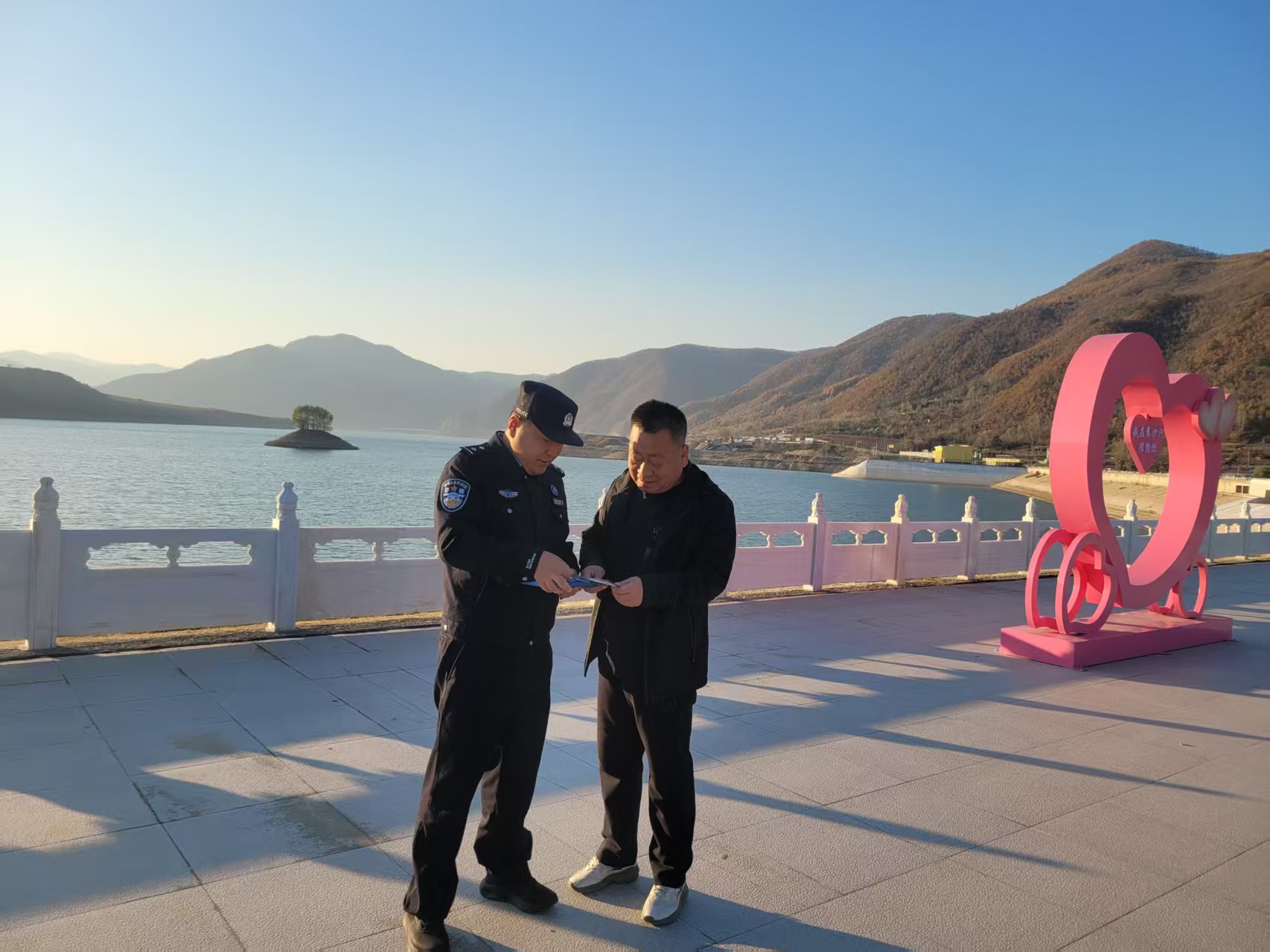 在葦沙河邊境轄區(qū)的田間地頭、景區(qū)角落、村屯院落里,臨江市邊境管理大隊葦沙河邊境派出所的民警們用“走心”的新舉措、“貼心”的新方法,將秋日的寒涼化作沁人心脾的溫暖。他們聚焦游客、村民的急難愁盼,從法治宣傳、安全守護、便民辦事三個維度創(chuàng)新服務,讓“警察藍”成為秋寒邊關最溫暖的色彩。 結合秋季“G331”國道旅游旺季,葦沙河邊境派出所組建“普法暖行隊”,將法治宣傳與便民服務相結合,進駐轄區(qū)游客集散地。民警不僅發(fā)放圖文并茂的《邊境旅游法律須知》宣傳單,詳細解讀無人機報備、邊境區(qū)域活動限制等易忽視條款,還在宣傳點設置“便民服務角”,提供熱水、充電寶、應急藥品及景區(qū)路線指引。針對老年游客,民警手把手講解宣傳單內容;對有特殊需求的游客,主動延伸服務,幫助聯(lián)系當地住宿、協(xié)調游覽問題。截至目前,“普法暖行隊”已服務游客300余人次,發(fā)放宣傳資料280余份,游客紛紛表示“不僅懂了法,更感受到了邊境民警的貼心”。