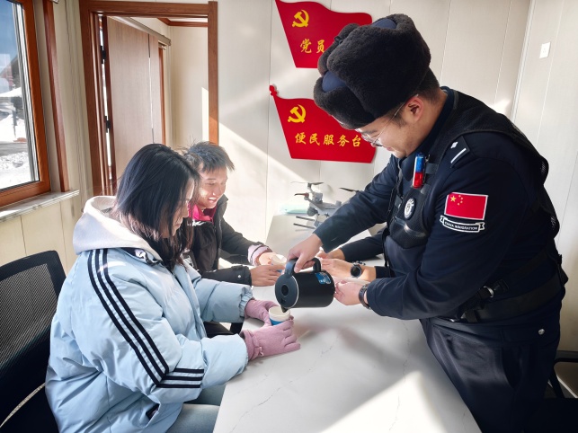 變被動(dòng)管理為主動(dòng)服務(wù),將執(zhí)勤民警作為冬季護(hù)游的前沿窗口,健全快速響應(yīng)機(jī)制,做到游客求助“零推脫”、涉旅警情受理“零積壓”、與游客溝通“零距離”,第一時(shí)間為游客解決燃眉之急。“護(hù)游”民警還提前制定應(yīng)急救助預(yù)案,在景區(qū)設(shè)立臨時(shí)救助點(diǎn),配備急救藥品、防寒物資和應(yīng)急工具。元旦以來(lái),民警先后為多名游客提供救助。在邊境檢查站執(zhí)勤卡點(diǎn),黨員先鋒崗持續(xù)釋放服務(wù)效能,熱氣騰騰的開(kāi)水、細(xì)致入微的咨詢(xún)指引,成為寒冬里最貼心的慰藉。