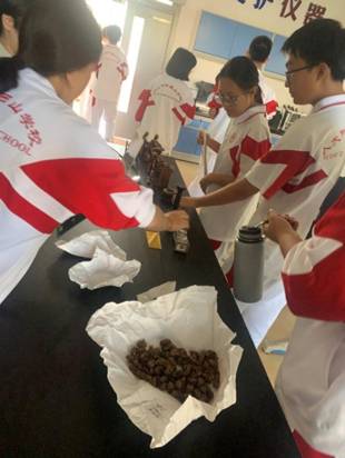 中醫藥相關藥材及制藥器材展示 來自北京同仁堂的專業講師,通過視頻、圖文及實物展示,向學生們介紹中醫藥發展歷程和中藥材知識,帶領大家初窺中醫藥文化的瑰麗面貌,現場展示傳統制藥流程和制藥工具模型、文創產品等,引發學生極大關注,積極參與互動。 據悉,“中醫藥文化進校園”的課程以中華傳統文化為底色,以中醫藥文化歷史脈絡為主線,以醫史文獻為基礎,結合青少年訴求和特點,在傳播知識的同時,注重學生主觀體驗和思想生成?!爸嗅t藥文化”系列課程,根據每所學校開設課程性質的不同,有針對性進行“一校一策”課程設置,力求兼顧實用性、多樣性、趣味性和系統性。內容涵蓋《黃帝內經》等中醫藥典籍、望聞問切等基本理論;常見中藥材、道地藥材辨識,中藥炮制、制劑技藝概論;飲片打包體驗,配制養生茶飲;學習八段錦、太極拳等傳統養生功法;常見病防治及中成藥合理應用等等。學生通過學習傳統醫學的基本理論和方法,認識中醫藥在防病治病方面的重要性,提高對傳統文化的認知和尊重。同時,通過系統學習,進一步增強文化自信,自覺傳承和弘揚中華優秀傳統文化。 內容豐富且寓教于樂的課程,在開課伊始就得到學生們廣泛好評。不僅證明了中醫藥文化在學生中的影響力和吸引力,也為“中醫藥文化進校園”項目的未來發展提供了積極的參考和引導。