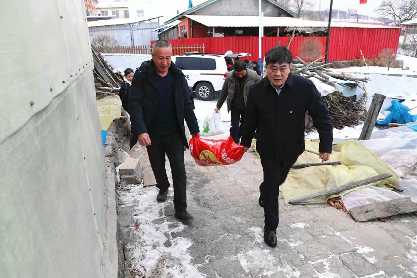 數九嚴寒,情暖山鄉。1月16日,隨著喜慶祥和的新春佳節即將到來之際,撫松縣人民法院黨組書記、院長宋永輝帶領政治部主任李憲斌、辦公室主任張生及包村“聯絡員”宋振國一行,冒著數九嚴寒先后深入到抽水鄉抽水村、參興村看望了15戶脫貧戶、困難戶及監測戶,每戶送上米、面、油慰問物資的同時,送上黨的關懷與新春祝福。