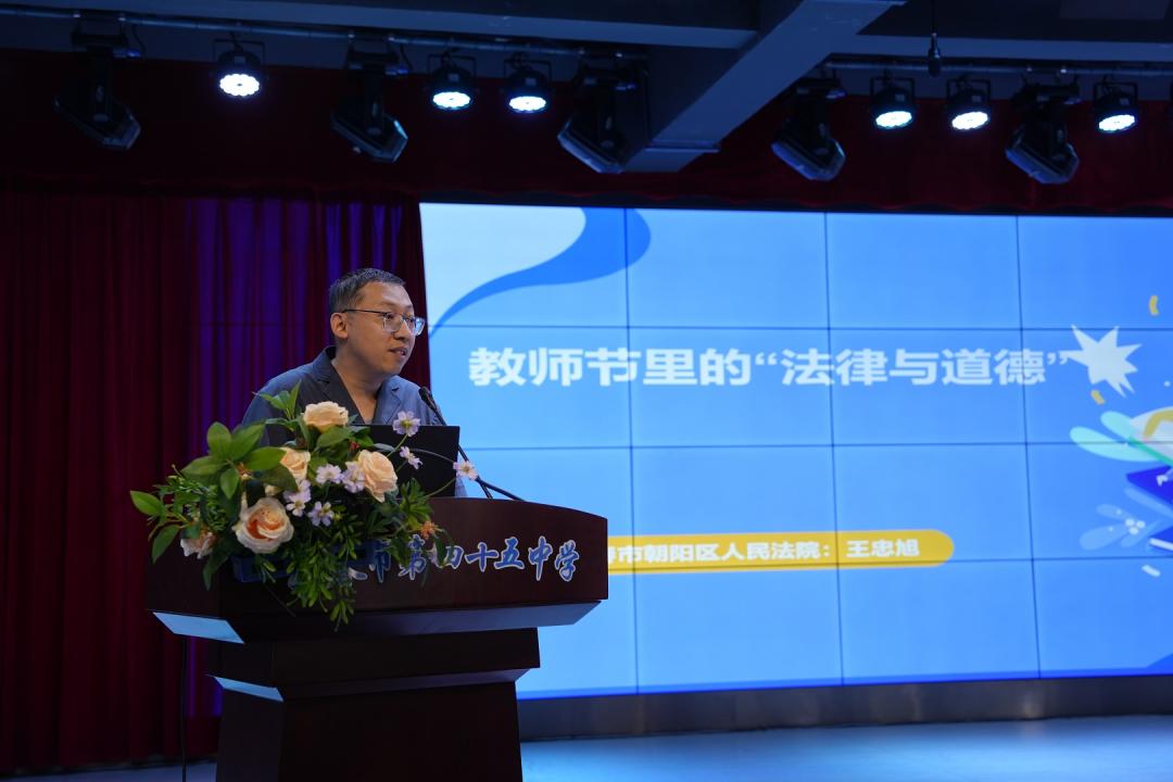 為進一步增強青少年法治觀念,弘揚尊師重道傳統(tǒng)美德,營造安全、和諧、文明的校園環(huán)境,近日,長春市朝陽區(qū)人民法院審判委員會專職委員王忠旭走進長春市第四十五中學,以“教師節(jié)里的法律與道德”為主題,為學生帶來了一堂內(nèi)容豐富、意義深刻的開學“法治第一課”。