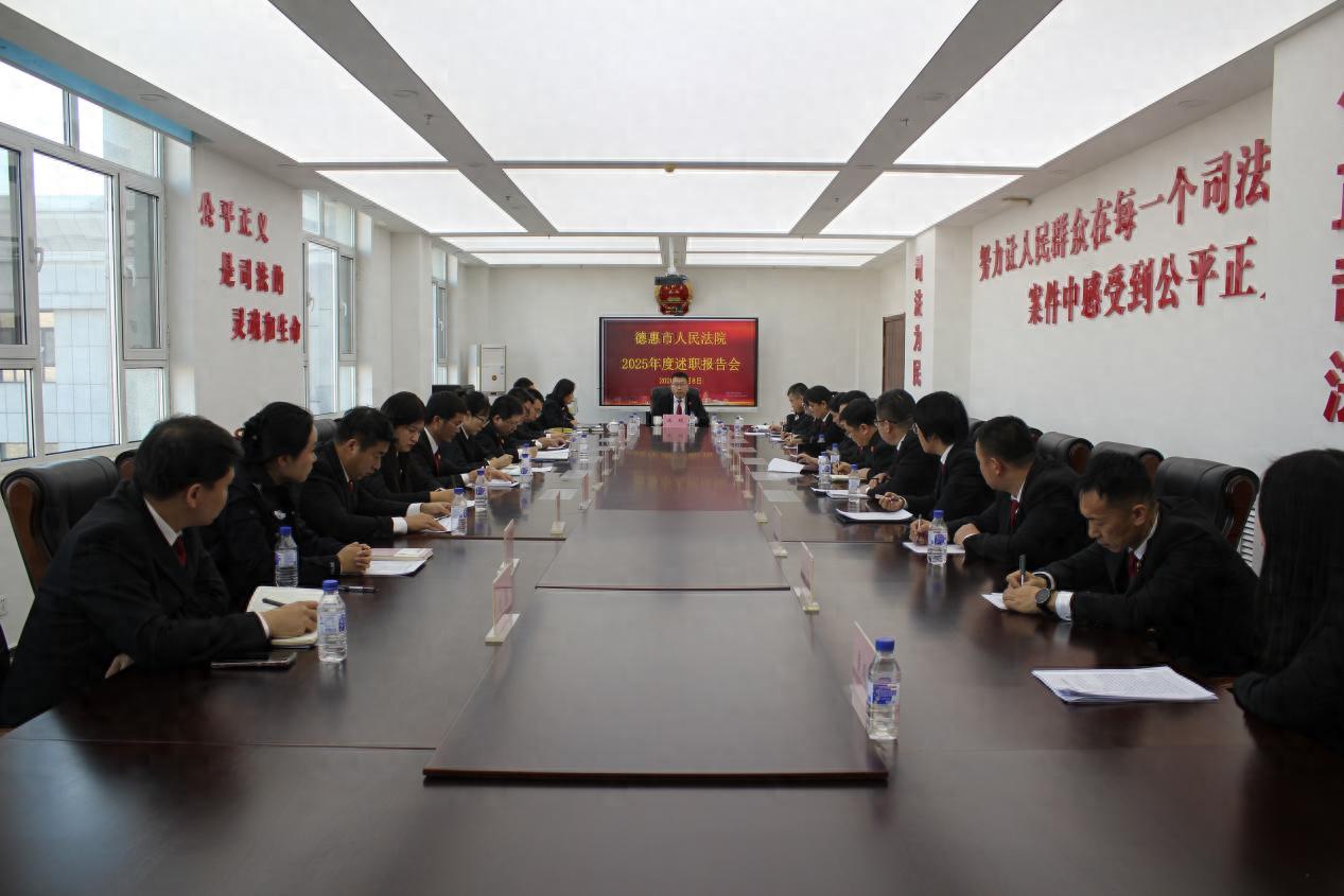 1月8日,德惠法院召開2025年度述職報告會。會上,各部門圍繞2025年度本部門重點工作依次述職,在總結工作成績的同時,重點分析工作中存在的短板弱項,暢談阻礙發展的困難問題,全面系統謀劃2026年工作舉措,進一步明確了全年工作思路和目標,為新一年各項工作開展凝聚思想共識。