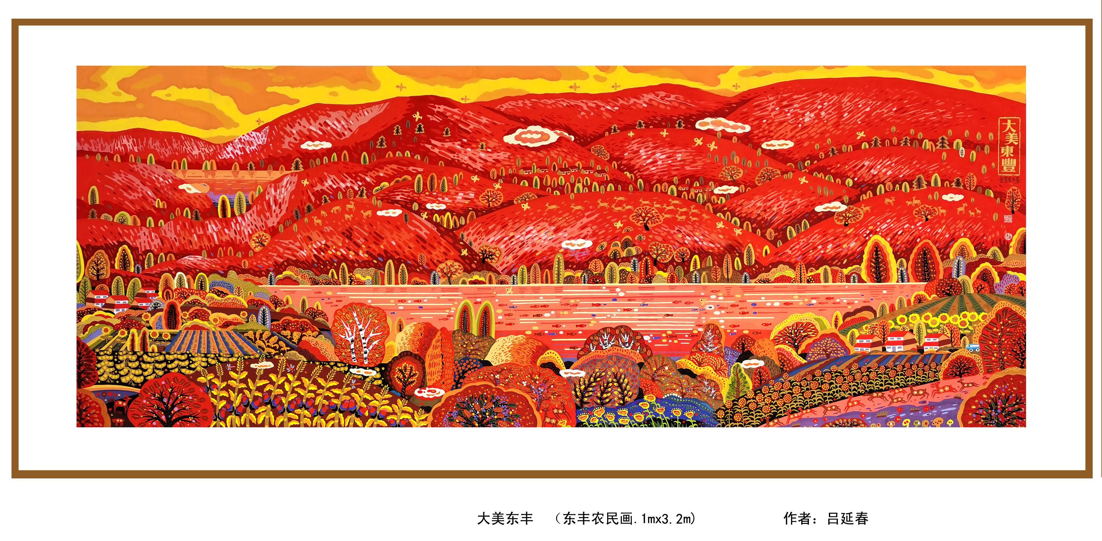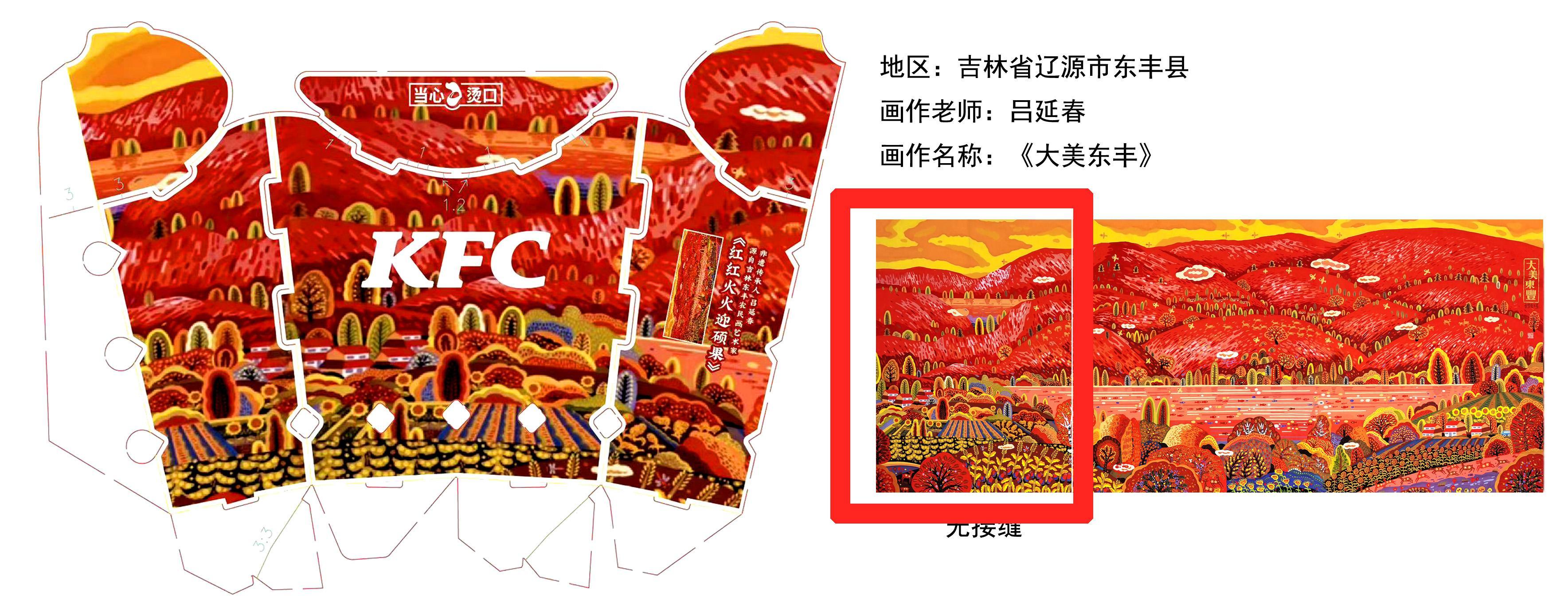 東豐農民畫歷史悠久,是一種獨特的民間繪畫形式。畫作以形象質樸、色彩明快、結構新穎飽滿為特征,洋溢著關東優秀文化特色和濃郁的北國民俗風情趣味,深受廣大群眾和社會的歡迎,在國內外具有重要影響,是遼源市、吉林省特色文化品牌,被列為吉林省非物質文化遺產。 前不久,北京新知造文化發展有限公司通過網絡媒體,關注到東豐農民畫,并看好了呂延春創作的農民畫作品《大美東豐》,擬將《大美東豐》作為2025年肯德基餐飲包裝盒征用設計主題。