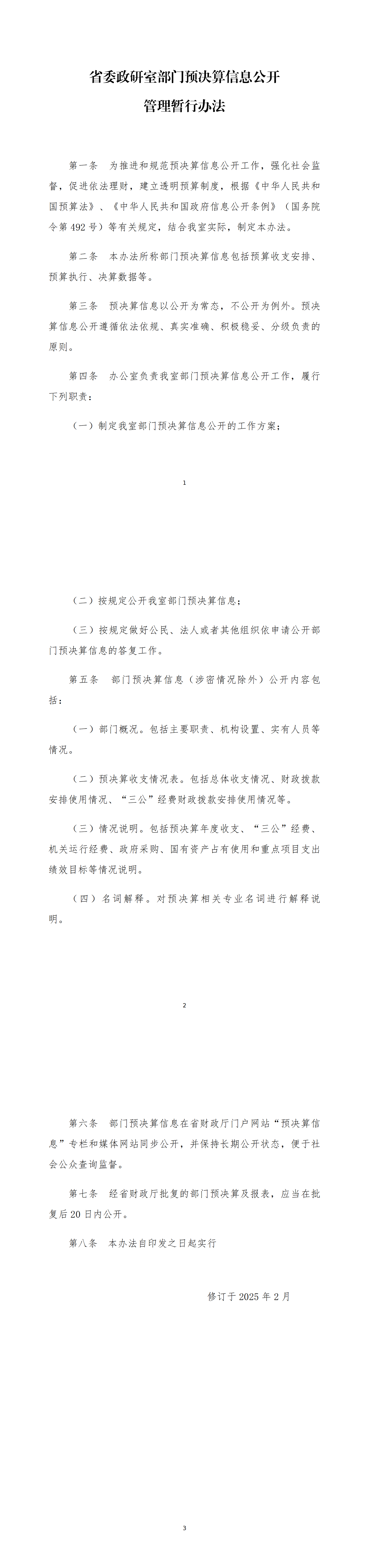 省委政研室部門預決算信息公開管理暫行辦法