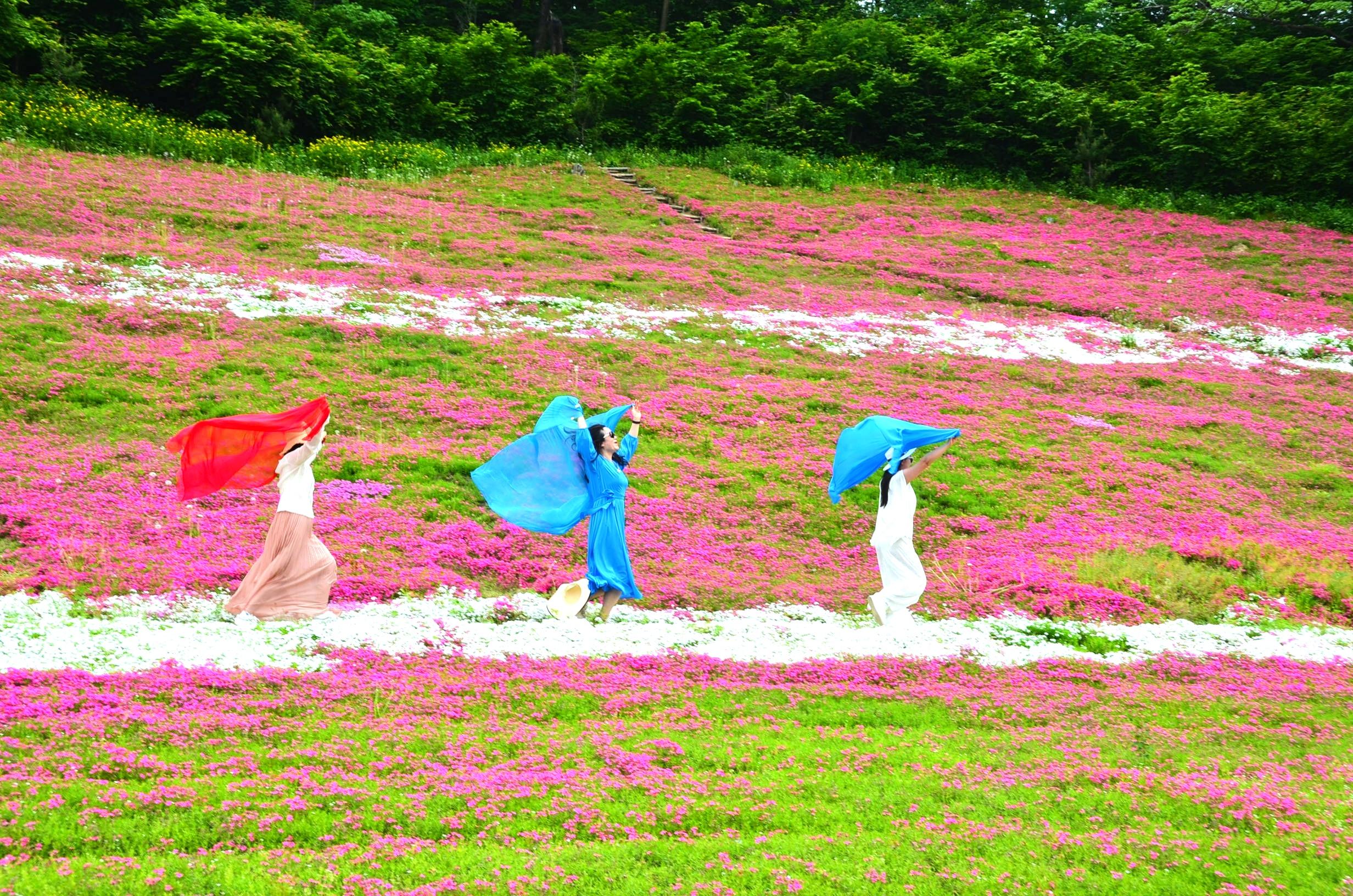六月的蛟河幽芳谷,花海翻騰彩浪涌,花香四溢舞翩翩。20萬平方米綻放的芝櫻花、油菜花竟相爭艷、芬芳馥郁,令漫步在花海之間的游人心曠神怡、流連忘返。