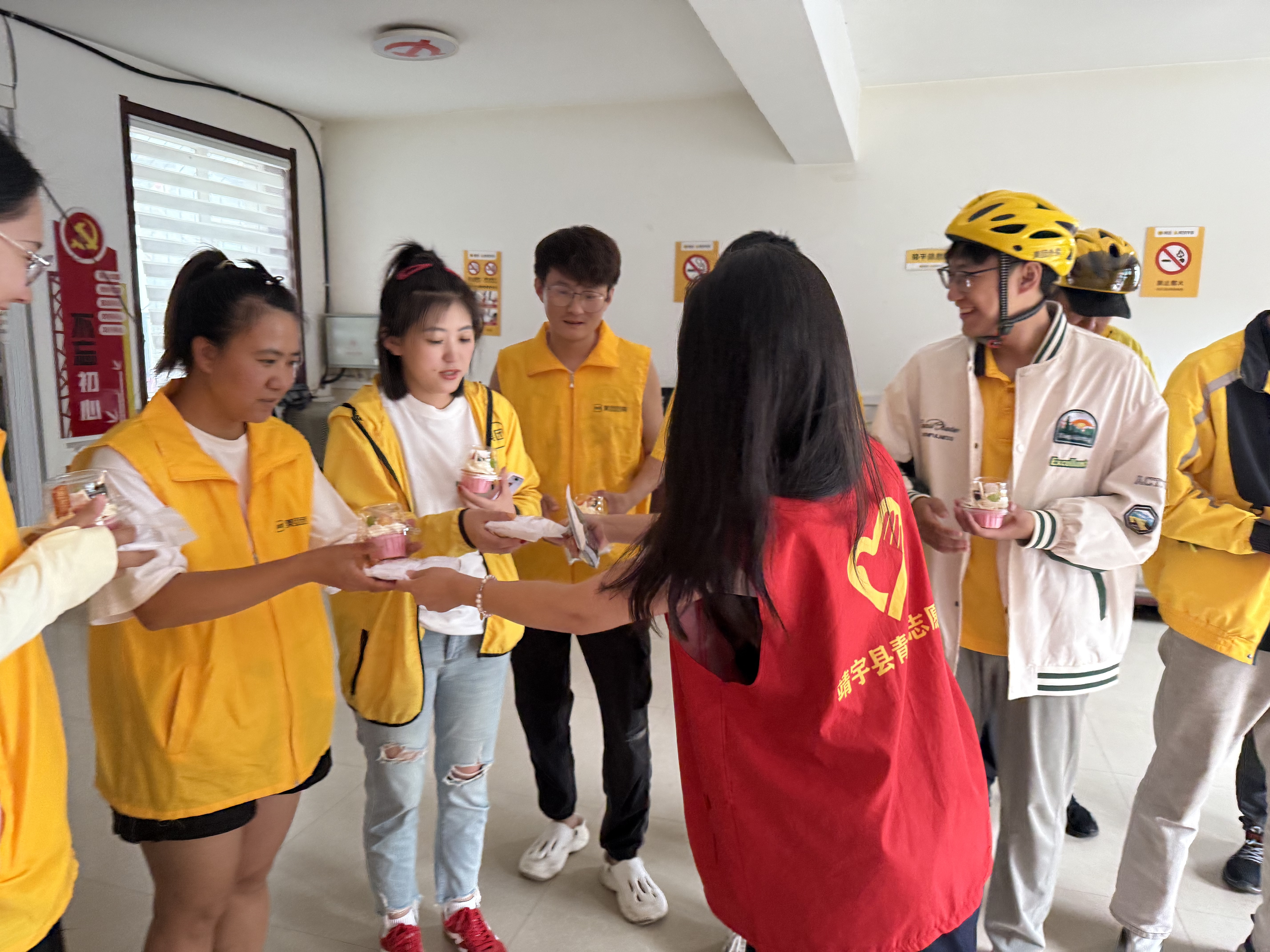 物資發放暖“新”,用心服務“零距離”。聚焦快遞員、外賣員等新就業群體的實際需求,不斷優化服務資源供給。在暖“新”驛站配備休息座椅、熱水壺、書報架等設施,免費提供應急充電、飲水上網、愛心藥箱等多項服務,活動中團縣委還為青年騎手送上包含防暑降溫物資、小蛋糕、健康知識手冊等慰問品,通過“小物資”發放釋放“大溫暖”。