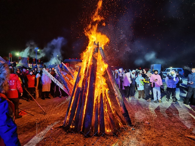 “撫松非遺體驗館”前,人頭攢動,人參剪紙、人參燙畫、烏拉草等撫松非遺項目,讓游客近距離觸摸文化脈搏,深切感受傳統文化的深厚底蘊和獨特魅力。 美食區內,現切現燉的殺豬菜咕嘟冒泡,鐵鍋燉的熱氣裹著肉香飄出老遠;冰糖葫蘆的酸甜、粘火勺的軟糯、東北烤串的焦香、人參雞湯的醇厚、凍梨凍柿子的冰爽……滿是地道東北年味。邊吃邊玩,幸福感滿滿。