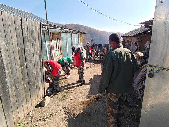 公共區域清理完后,村兩委及駐村工作隊成員又來到年紀大的村民家里,幫助他們清理庭院。